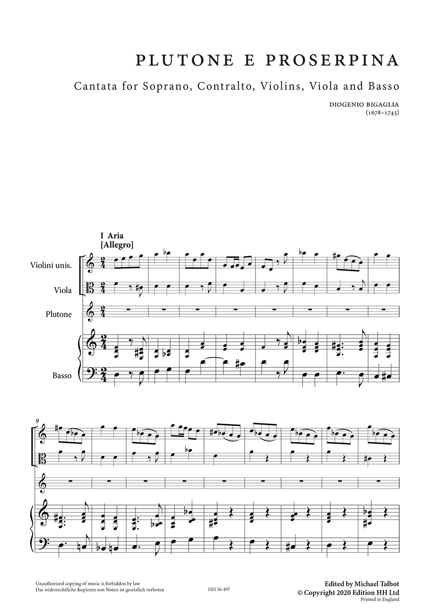 Diogenio Bigaglia Cantata: Plutone e Proserpina Soprano, contralto, strings and basso continuo edited by Michael Talbot Full score and parts Music example (pdf) How to order